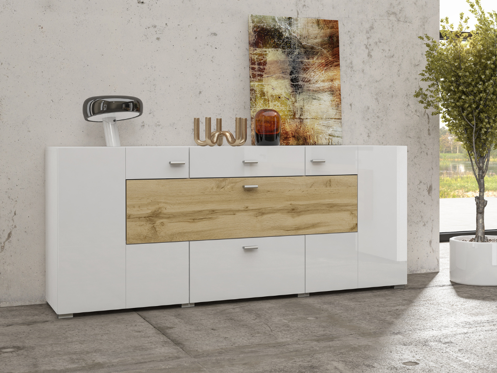 Aparador DORE 01 – Carvalho/Branco, 139cm