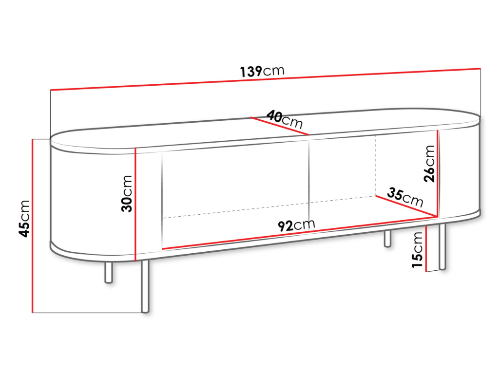 • Dimensões: C139xP40xA45cm