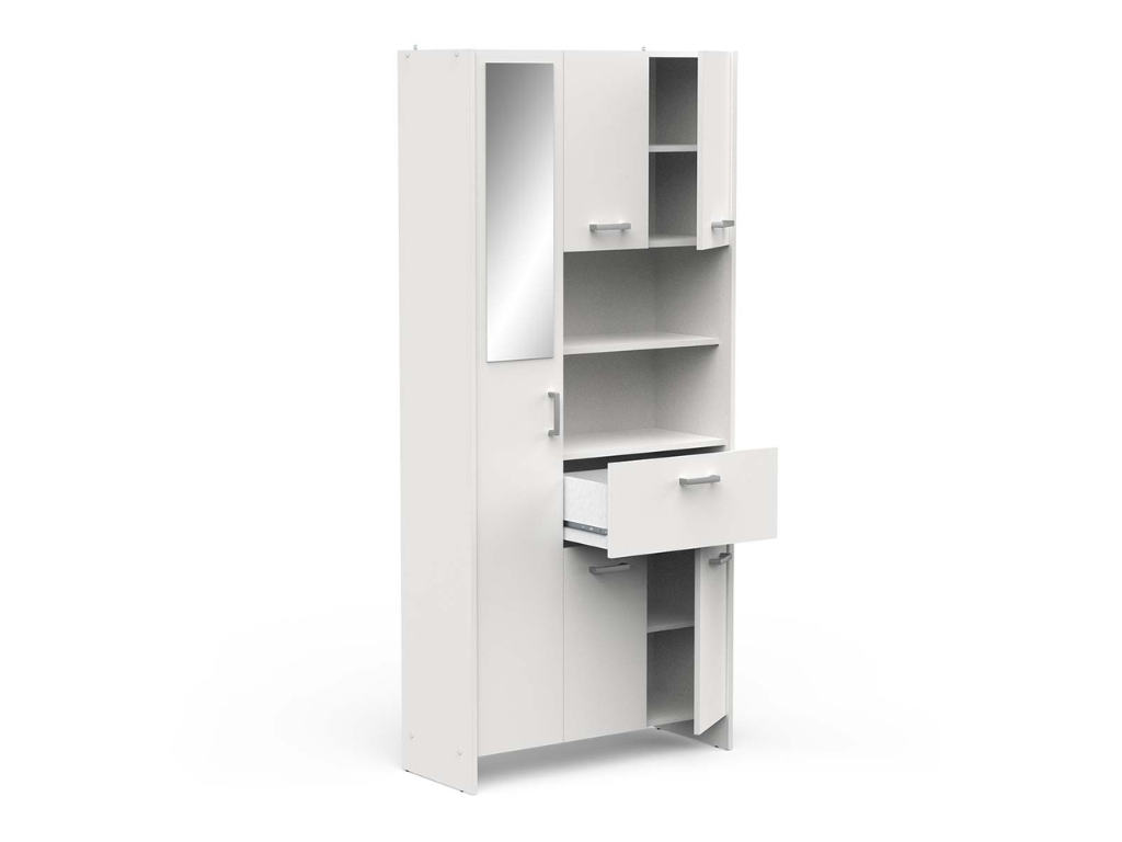 • 1 Porta com 5 prateleiras no interior e espelho no exterior